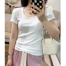 低U领正肩螺纹短袖t恤显瘦短款上衣