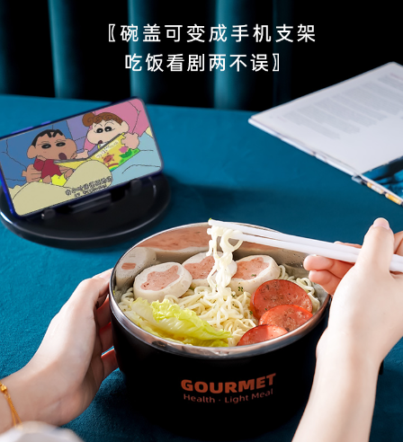 不锈钢泡面碗带盖学生单个宿舍饭盒易洗可沥水大号容量上班族